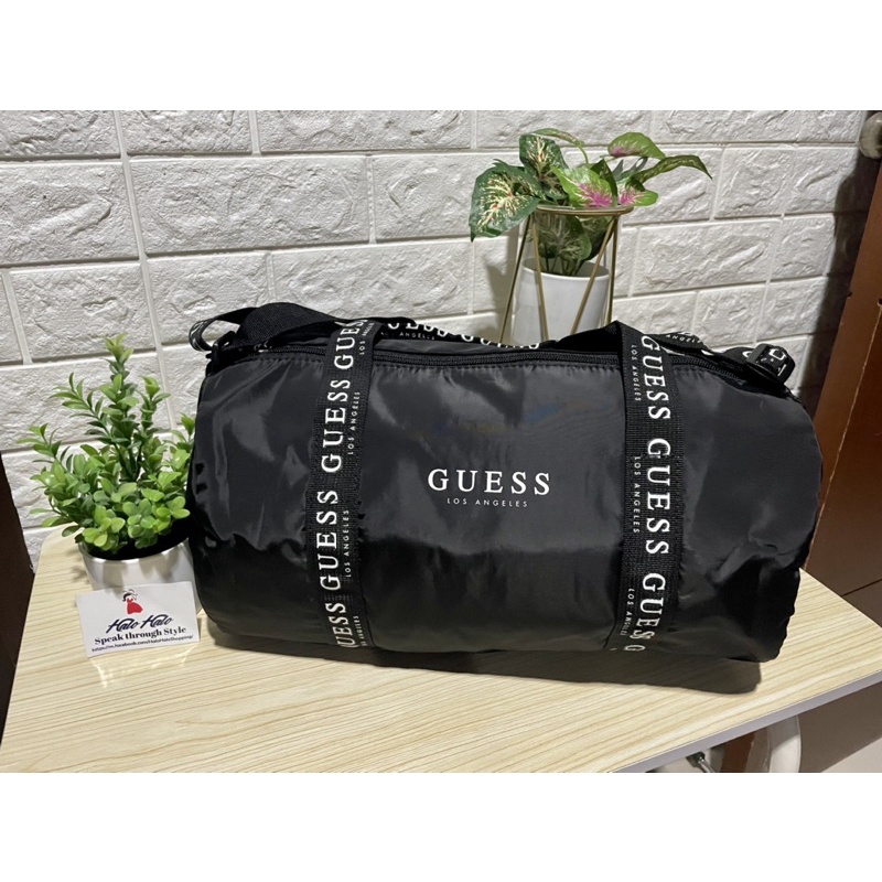 Shop iconic styles like the Logo Duffle Bag in the Travel Tech department at GUESS. Our range of womens handbags includes totes wallets shoulder bags satchels crossbody bags clutches and more all designed to take you from the working week. Like the guess brand even though their clothing runs extremely small but I can buy other guess items besides their clothing and this GUESS Factory Womens Logo duffel bag is one of them its roomy enough to fit all my socks bras and underwears You could get five pairs of shoes in it alone to tell you the size of it and the material doesnt feel cheap.